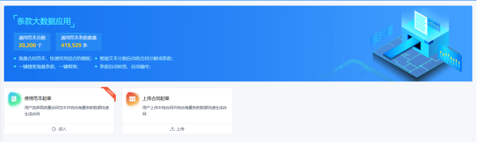 合同条款大数据库也是合同起草阶段的一个重要知识应用体系,承办人在起草合同的时候,对于合同中的个别条款不满意的,可以通过关键词查询从合同条款大数据库中找到相符条款,直接替换当前条款,提高合同起草质量和效率。(如下图所示)